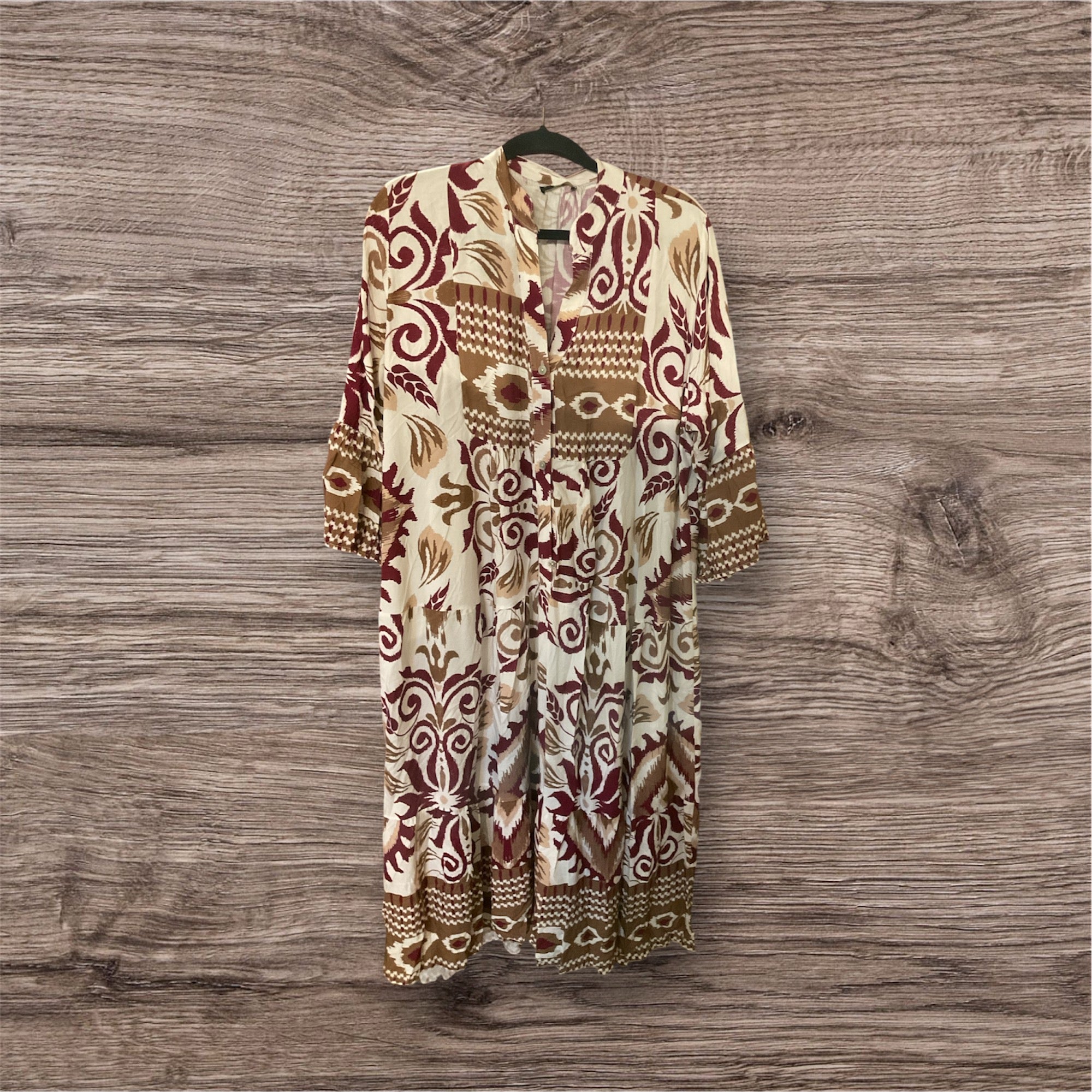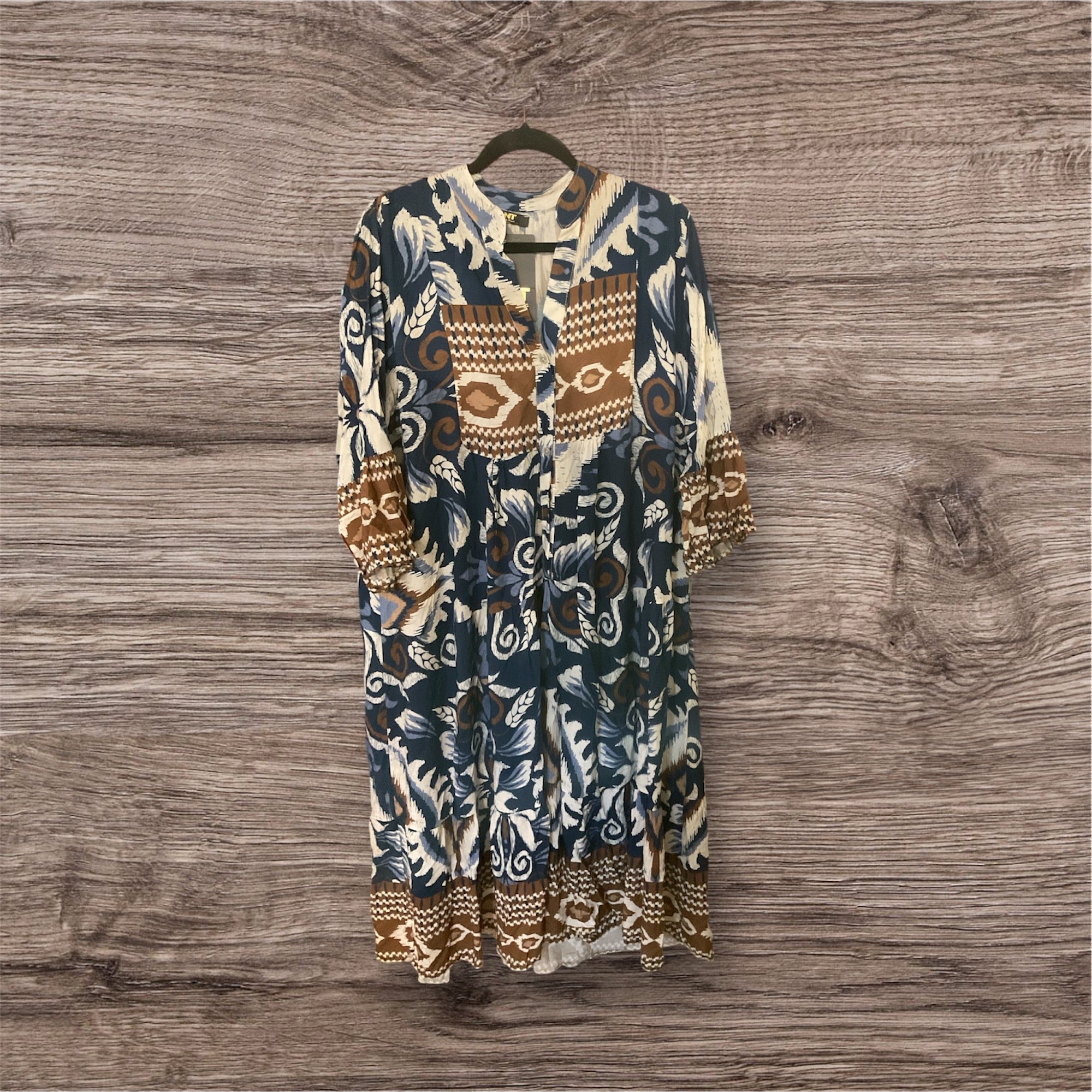 "Stay stylish and comfortable with our Fabiola Long Dress. Made with a unique print, this long dress is perfect for any occasion. The bold design is sure to make a statement while the soft fabric keeps you feeling great all day long. Add this dress to your wardrobe for a fashionable and functional piece."