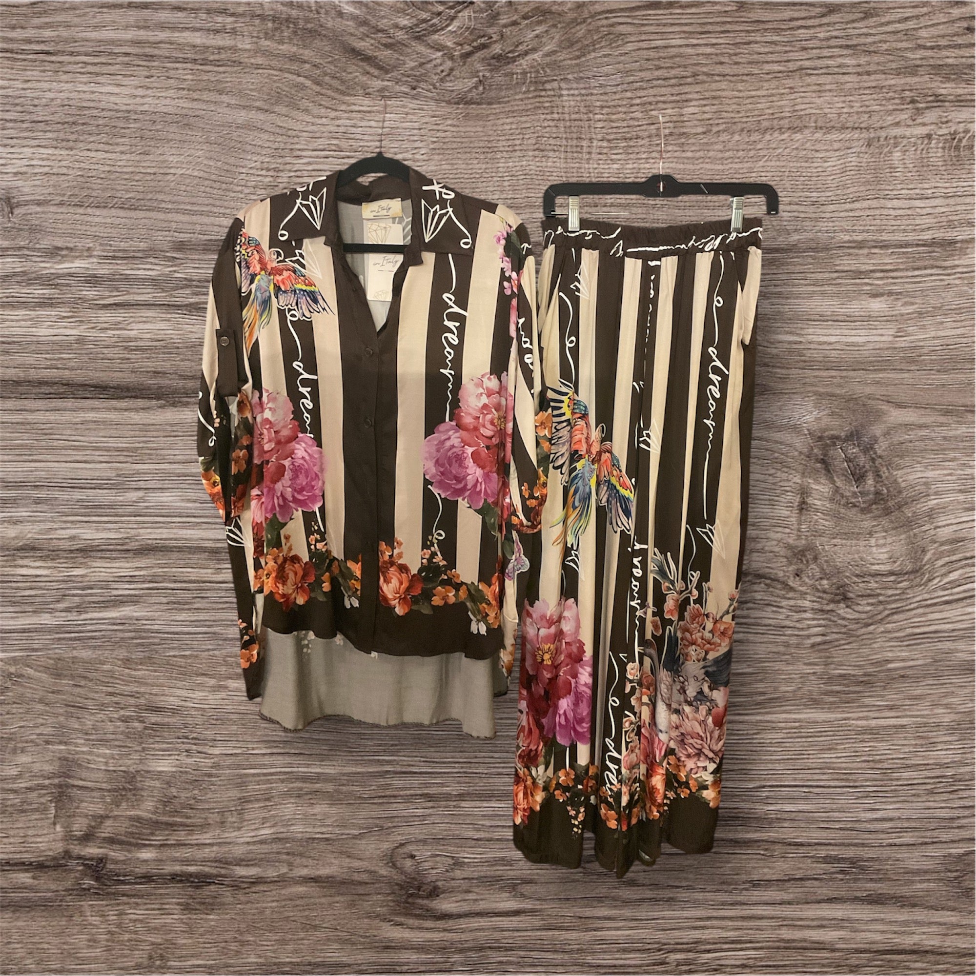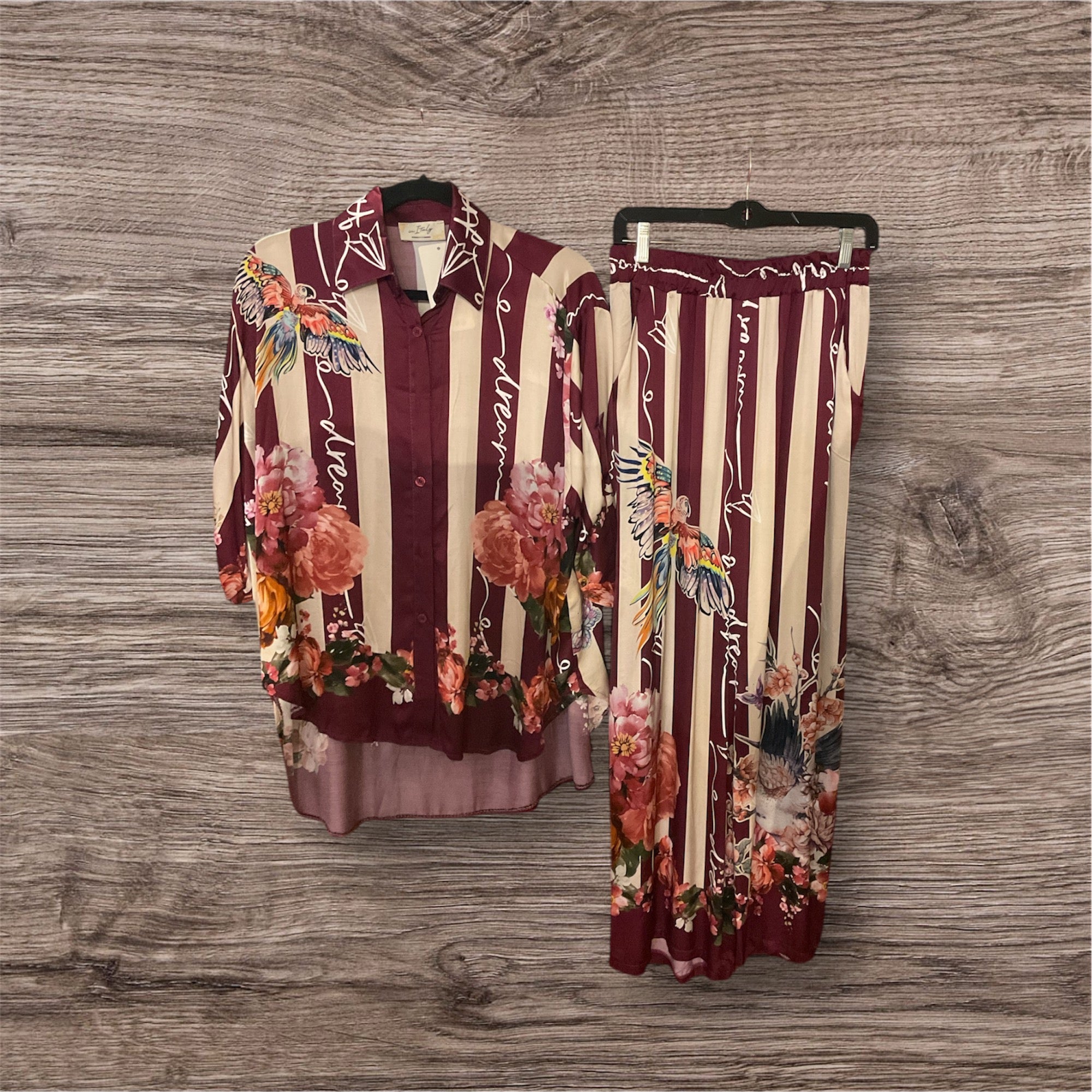 This Swan Satin Set features a stylish pants set made from smooth satin fabric, adorned with delicate swan and floral designs. The elegant design and comfortable material make this set perfect for any occasion. Stand out in style and feel luxurious with this unique and fashionable set.