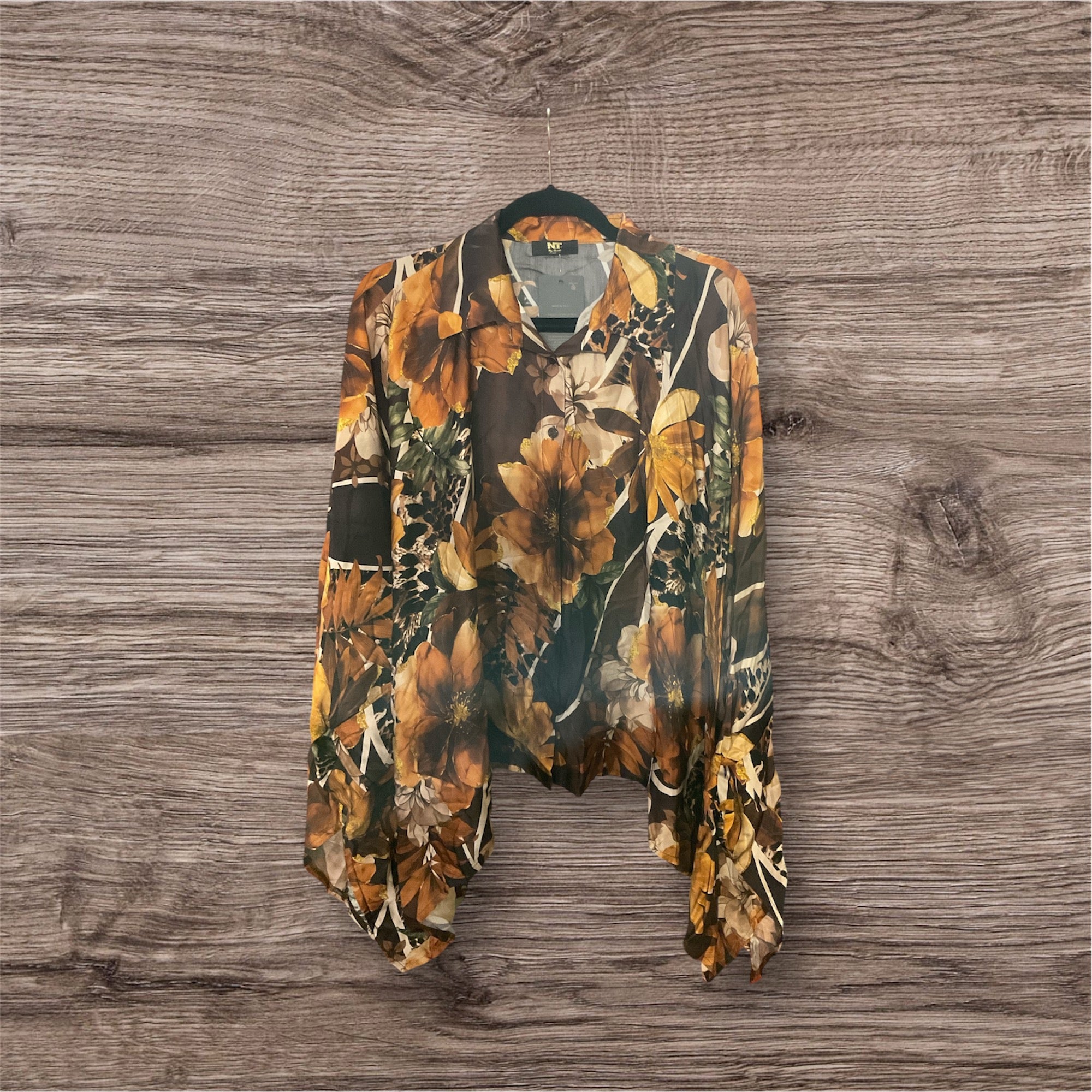 Expertly crafted from luxurious satin, the Alaina Blouse offers an oversized fit for ultimate comfort and style. Its warm colors add a touch of elegance to any outfit. Perfect for both casual and formal occasions.